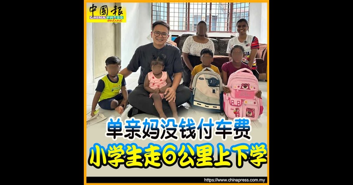 这一家5口在每个上学日,从双溪龙住家步行到皇冠城淡小,单程约3公里,虽然每天必须步行至少6公里路,但这名单亲妈妈依然坚持让孩子上学。