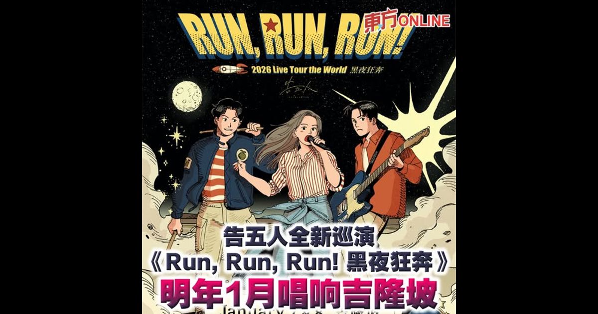 (吉隆坡29日讯)超人气 Z 世代华语乐团告五人,将于 2026 年 1 月 7 日与 8 日,携全新世界巡演《Run, Run, Run! 黑夜狂奔》重磅回归!他们将以最贴近粉丝的 Live House 形式,在 Zepp Kuala Lumpur 带来一场“回到初心”的音乐旅程,给乐迷们带来来一场近距离、能量满溢的狂奔之夜!