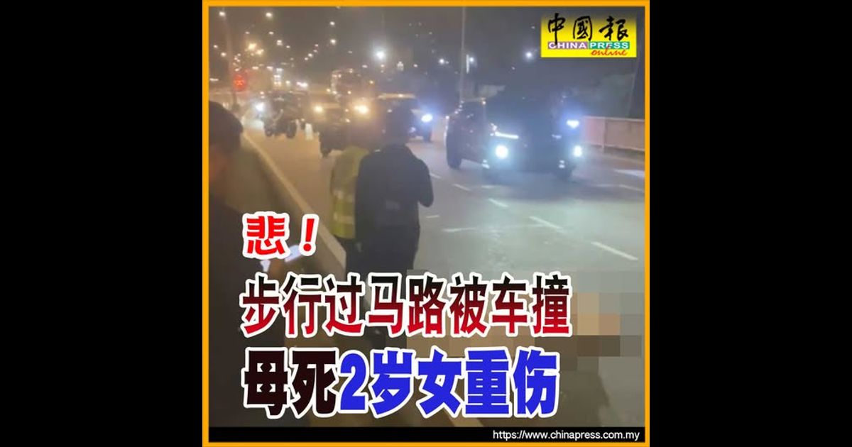 (槟城29日讯)外籍妇女带着2岁女儿步行越过马路时,遭一辆休旅车撞击,母死女伤。