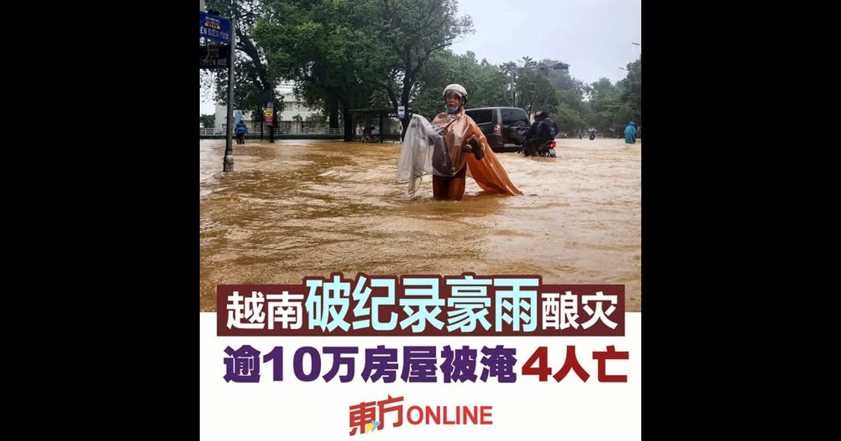 越南破纪录豪雨酿灾 逾10万房屋被淹4人亡