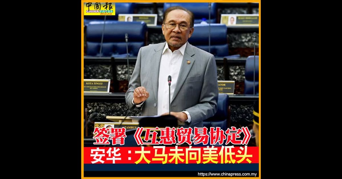(吉隆坡30日讯)马来西亚和美国日前签署《互惠贸易协定》,首相拿督斯里安华强调,大马并没有为了签署这份协定而选择向美国低头。