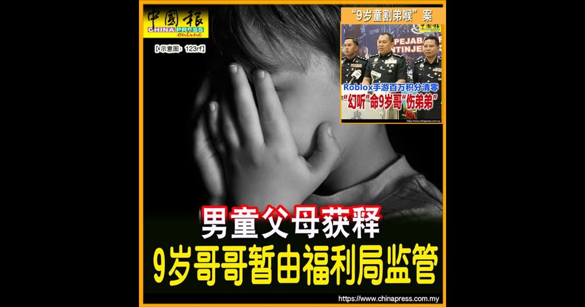 (峇株巴辖30日讯)“9岁童割弟喉”案;9岁男童目前仍由社会福利局监管,而男童的父母已获得警方保释。