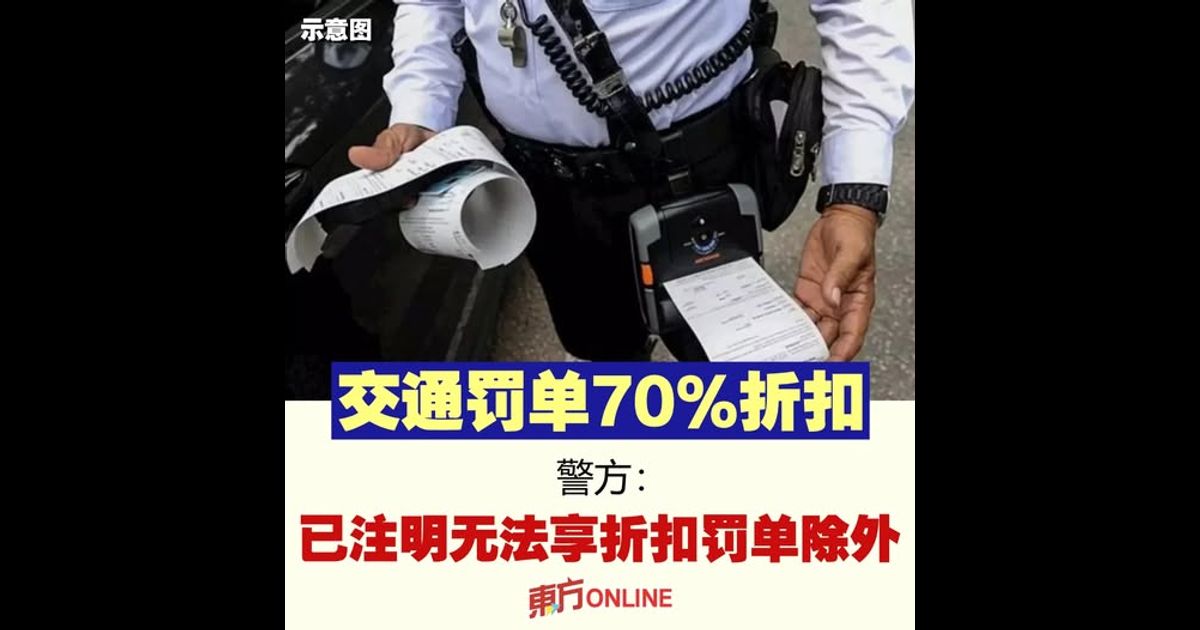 (吉隆坡31日讯)武吉安曼交通调查与执法部总监拿督斯里莫哈末尤斯里表示,已注明无法享有折扣的罚单,皆不能享有70%折扣。