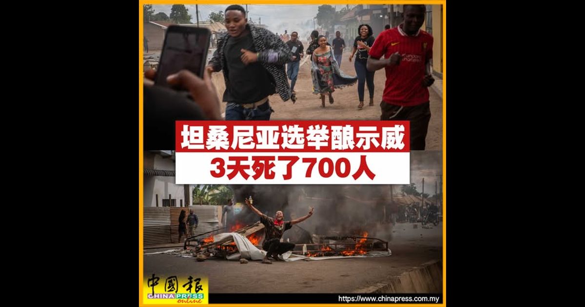 (多多马31日综合电)非洲国家坦桑尼亚本周争议性的选举引发多地民众连日抗议,主要反对党称已有约700人死亡。