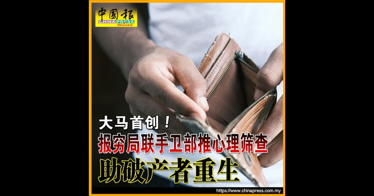 大马首创!报穷局联手卫部推心理筛查 助破产者重生