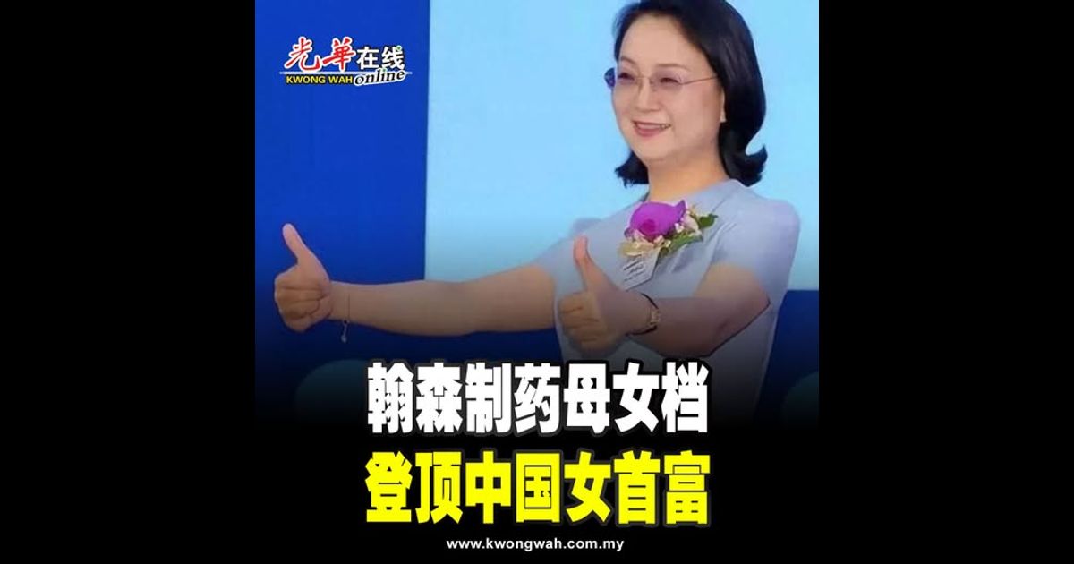 中国女首富之位易主。胡润研究院30日发布的女企业家榜显示,创新药巨头“翰森制药”董事长、64岁钟慧娟及其38岁的女儿孙远,以1410亿人民币(832.83亿令吉)身家首次问鼎中国女首富。