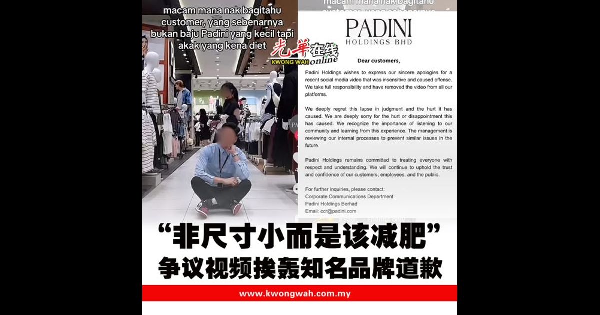 本地知名时尚零售商Padini Holdings近日因一部涉嫌羞辱顾客身材的视频引发争议,遭到网民炮轰,最终撤下该视频并公开道歉。