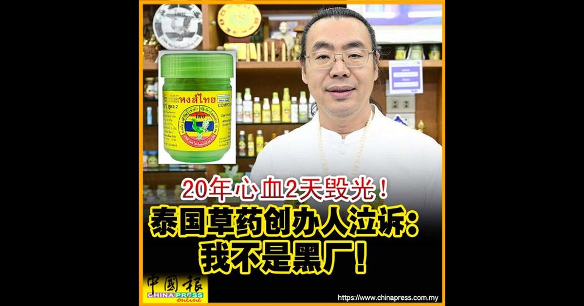(曼谷31日综合电)“20年心血,两天被毁!”泰国Hong Thai人气草药品牌陷开业以来危机,创办人提拉蓬崩溃发声,泣诉自己并非恶意违法,而是被现实逼到无路可走。