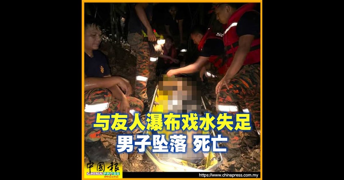 (打巴1日讯)一名男子与友人在瀑布戏水,失足误坠瀑布水池,现场抢救不治!