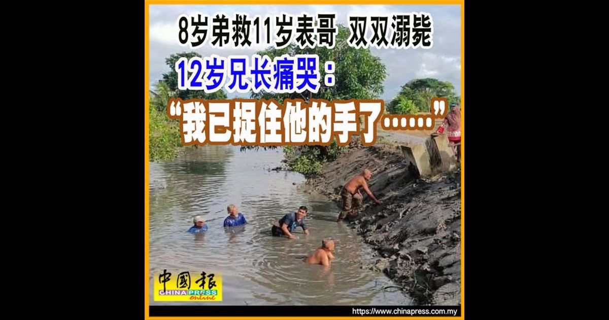 (加央1日讯)11岁与8岁表兄弟原本相约到球场玩乐,岂料途中却到小溪玩乐,11岁男童不幸遇溺挣扎,8岁男童见状赶紧救人,结果双双溺毙!