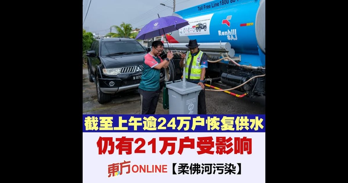 (新山2日讯)  由于柔佛河污染引发水供中断,截至今日上午10时,受影响的45万5499户用户中,已有24万4242户恢复供水。