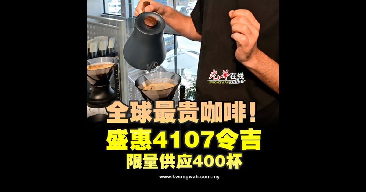 阿联酋杜拜一家咖啡馆推出全球最贵的咖啡,每杯盛惠980美元(4107令吉),仅限量供应约400杯。这款咖啡采用巴拿马矜贵咖啡豆Nido 7 Geisha炮制,带有茉莉花及柑橘果香,十分独特。