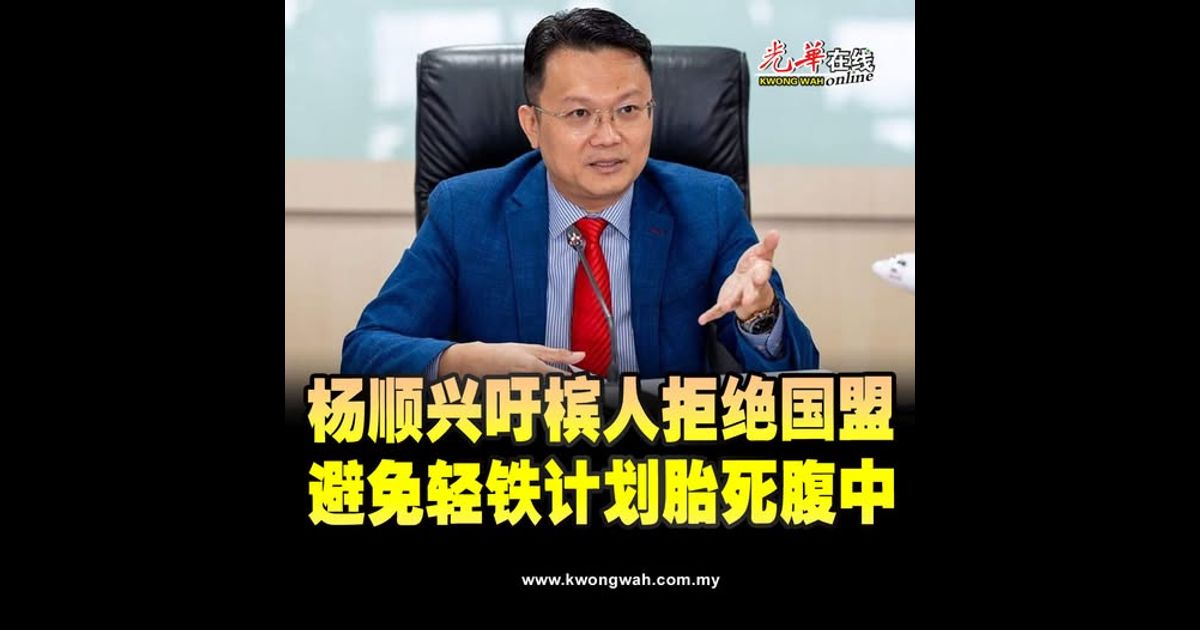 杨顺兴指出,最令人心寒与可悲的是马华领袖也随国盟议员闻鸡起舞,也反对槟轻快铁计划;国盟与马华领袖政治化基础设施发展的行为,与团结政府对轻快铁项目的高度重视形成了强烈对比,也进一步暴露了国盟与马华意图破坏槟州社会经济发展的意图。