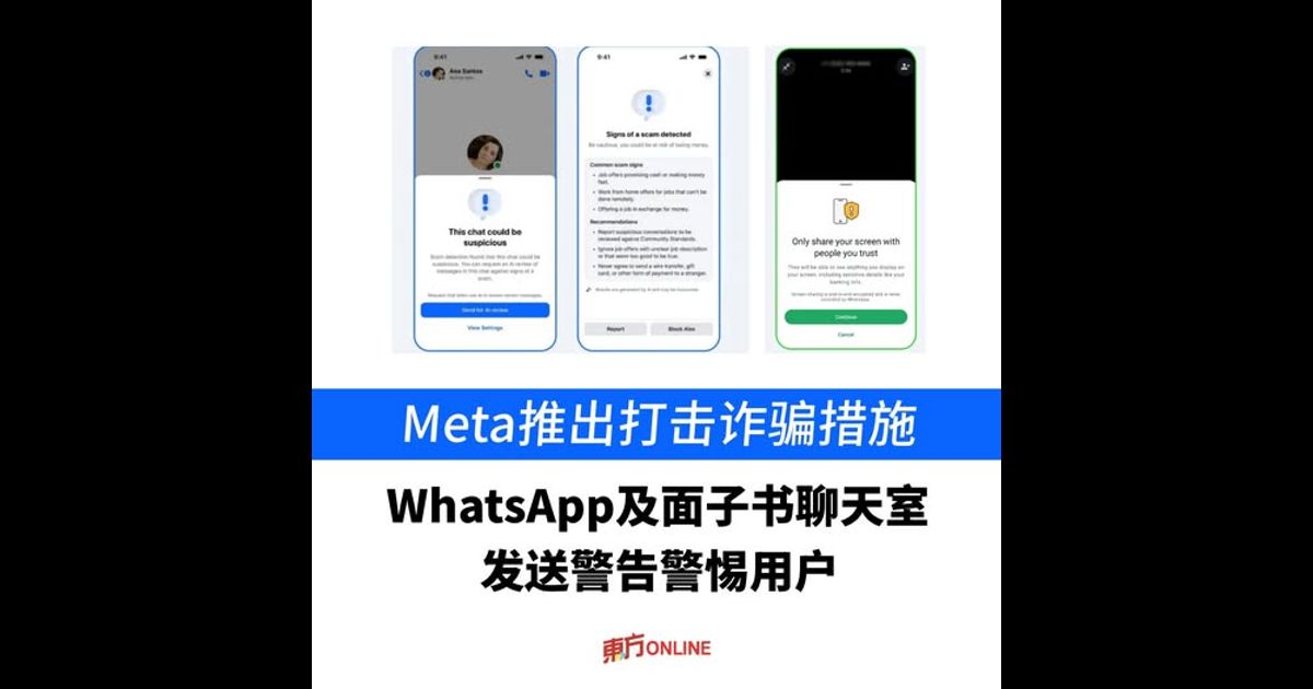 Meta配合数码益终身节,周日(2日)宣布推出全新的反诈骗工具,并在新加坡扩大数码素养计划,协助用户识别骗局和保护个人资料安全。