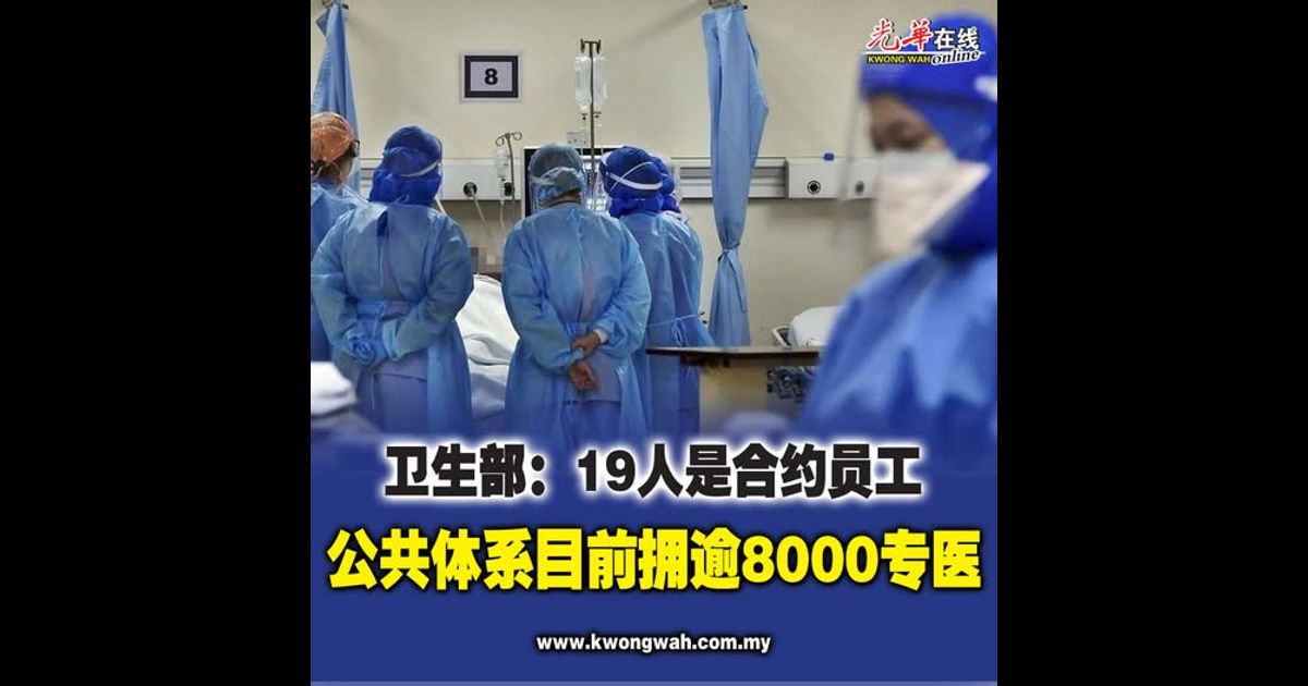 卫生部表示,目前共有超过8000名专科医生在公共体系下任职,当中有19人是合约员工。