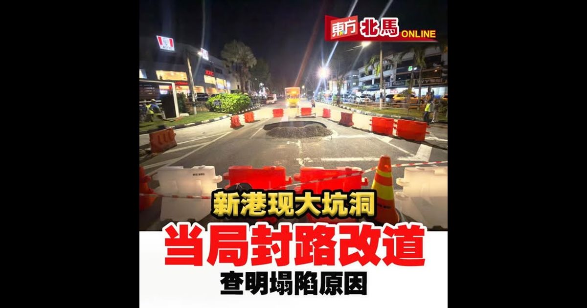 较早前,新港Kenari路于今傍晚6时40分在新港中学(SMK Sungai Ara)前方路段惊现地陷,坑洞面积约5公尺长、3.5公尺宽、深1.9公尺,所幸事件未酿人命或车祸。