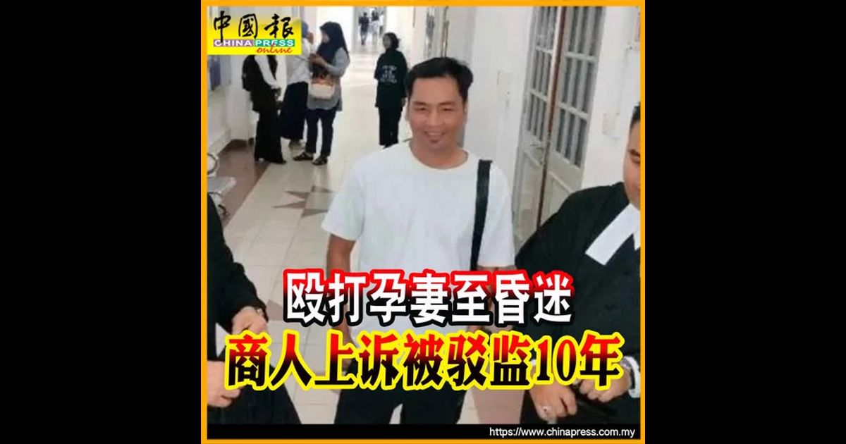 (新山4日讯)“商人殴打孕妻至昏迷”案;新山高庭驳回42岁被告的上诉,维持10年监禁的判决。