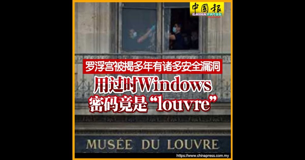 (巴黎5日综合电)巴黎罗浮宫10月19日早在失窃,9件拿破仑时期的珠宝被轻易取走后,法媒《解放报》查阅了大量与卢浮宫安全相关的文档,这些文档自2014年以来就已暴露出诸多安全漏洞,包括卢浮宫的视频监控系统服务器的密码竟然就是简单的“louvre”(即卢浮宫法语拼写),输入后即可访问伺服器。