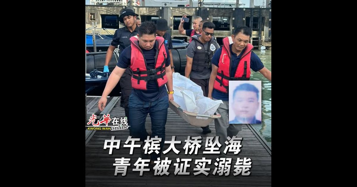 中午驾驶汽车直上槟城大桥跳海的华裔青年,被证实溺毙。
