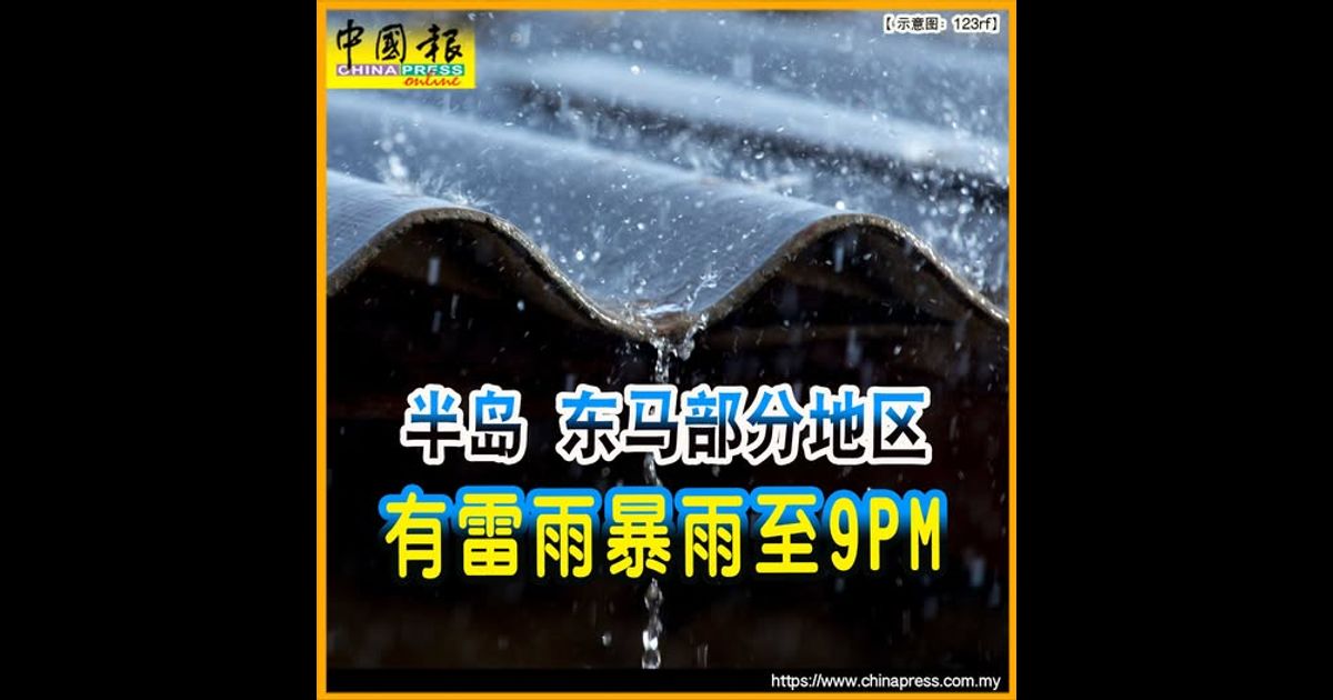 (吉隆坡6日讯)气象局发布天气预报,半岛和东马部分地区将有雷雨和暴雨,预计持续到晚上9时。