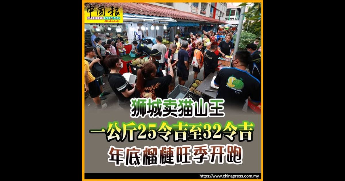 (新加坡6日讯)年底榴梿旺季开跑,估计持续至农历新年,全岛榴梿商近日纷推促销,猫山王一公斤卖8至10元(25至32令吉),再掀榴梿热。