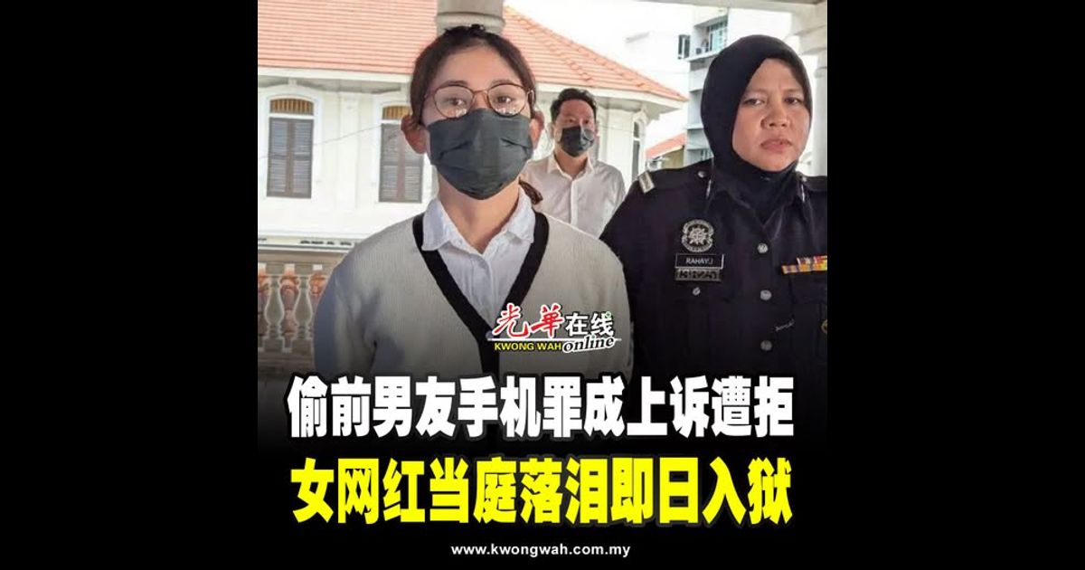 女网红廖依美(Sarah Leo)涉嫌偷窃前男友手机案,被告收藏赃物罪名成立,被判监禁1个月及罚款8000令吉,尽管辩方申请上诉,但法院驳回暂缓刑罚的请求。