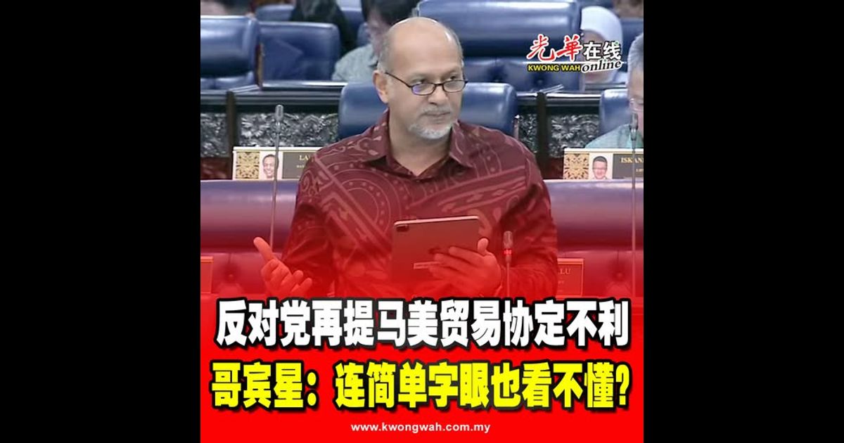 在野党国会议员再提大马与美国所签署的《马美互惠贸易协定》(ART)对我国的不利,遭到数码部长哥宾星训斥:“我不解为何简单的文字,对方(反对党)也不能明白。”