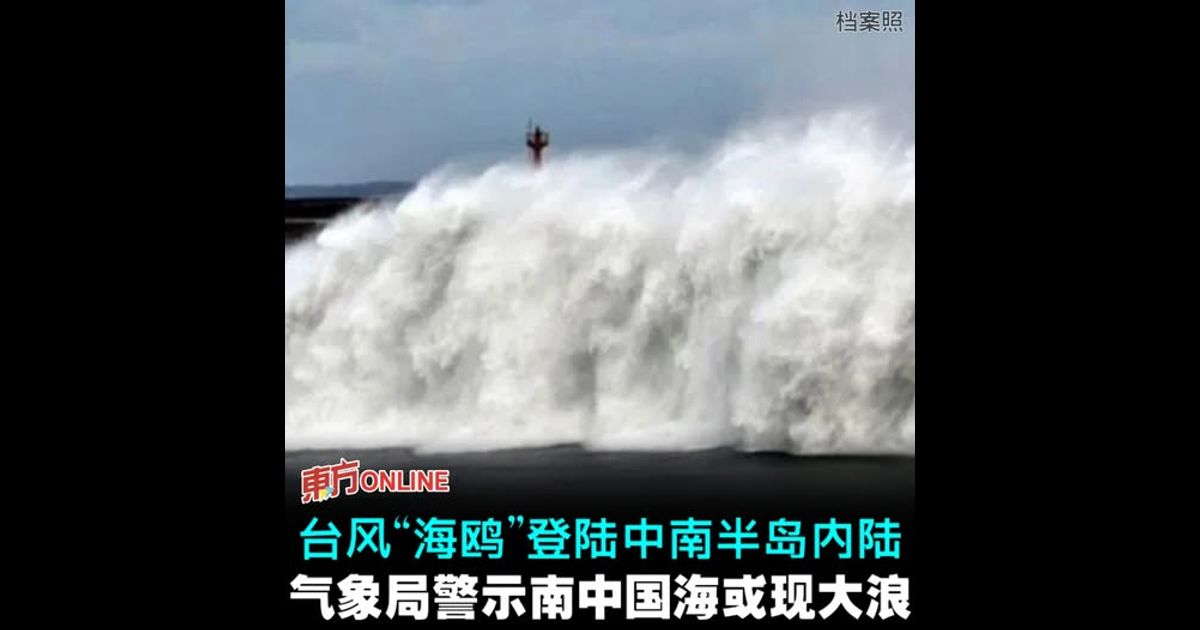 台风“海鸥”登陆中南半岛内陆 气象局警示南中国海或现大浪