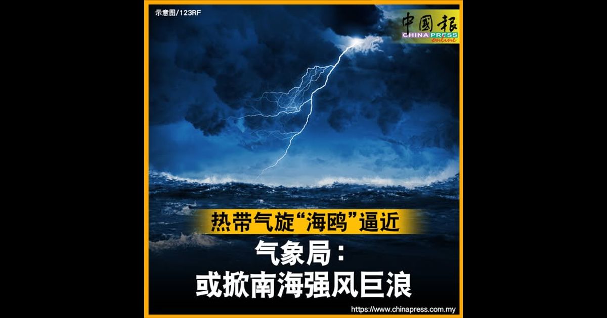 (吉隆坡7日讯)大马气象局指出,热带气旋“台风海鸥”(Kalmaegi)已在北纬14.0度、东经105.0度的寮国与柬埔寨边界被监测到,正以时速35公里向西移动。