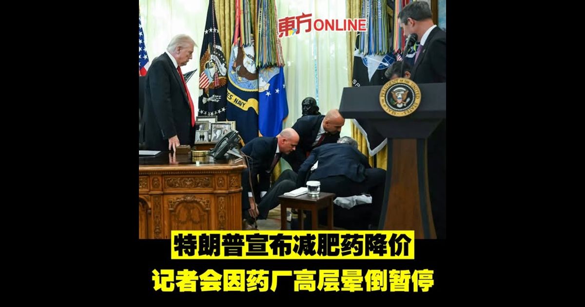 (华盛顿7日讯)美国总统特朗普当地时间周四在白宫椭圆形办公室举行记者会,宣布大幅降低减肥药价格,期间其中一家制药公司的高层突然晕倒,迫使记者会一度暂停。