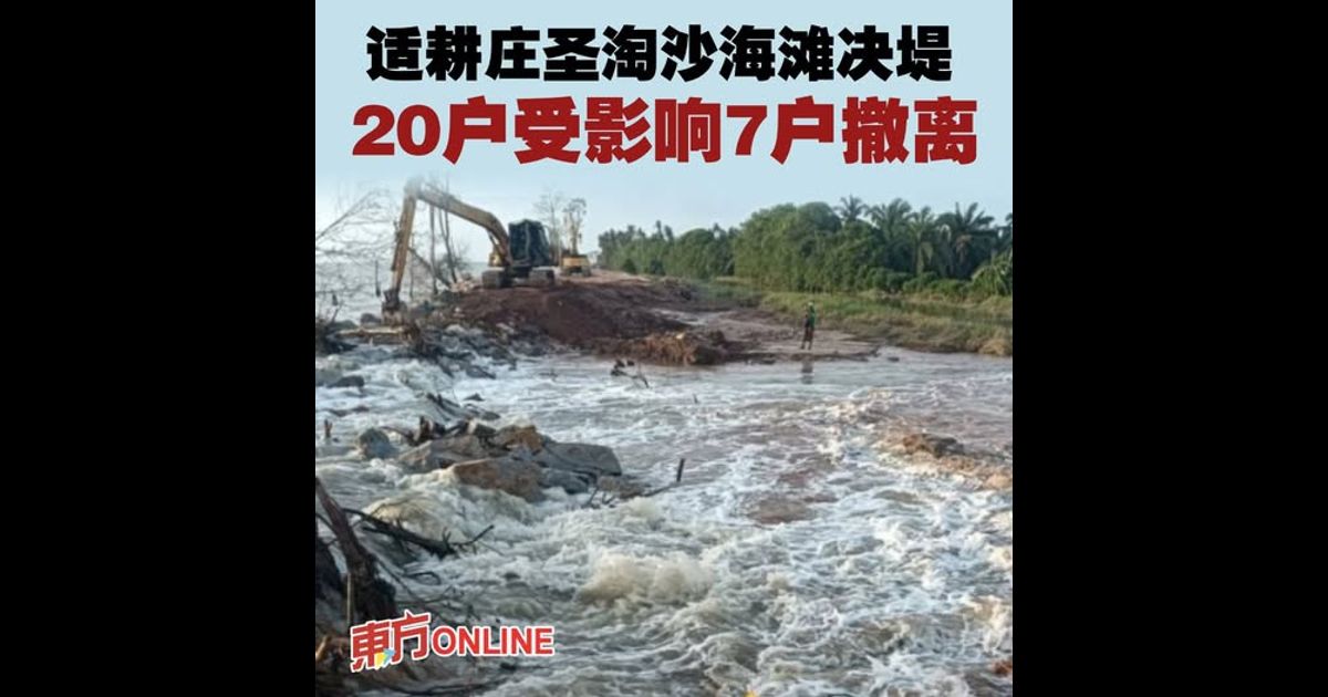 (莎阿南7日讯)雪兰莪适耕庄Parit 5 圣淘沙海滩(Pantai Sentosa)昨晚发生决堤事故,导致20户民宅受影响,其中7户家庭被迫撤离。