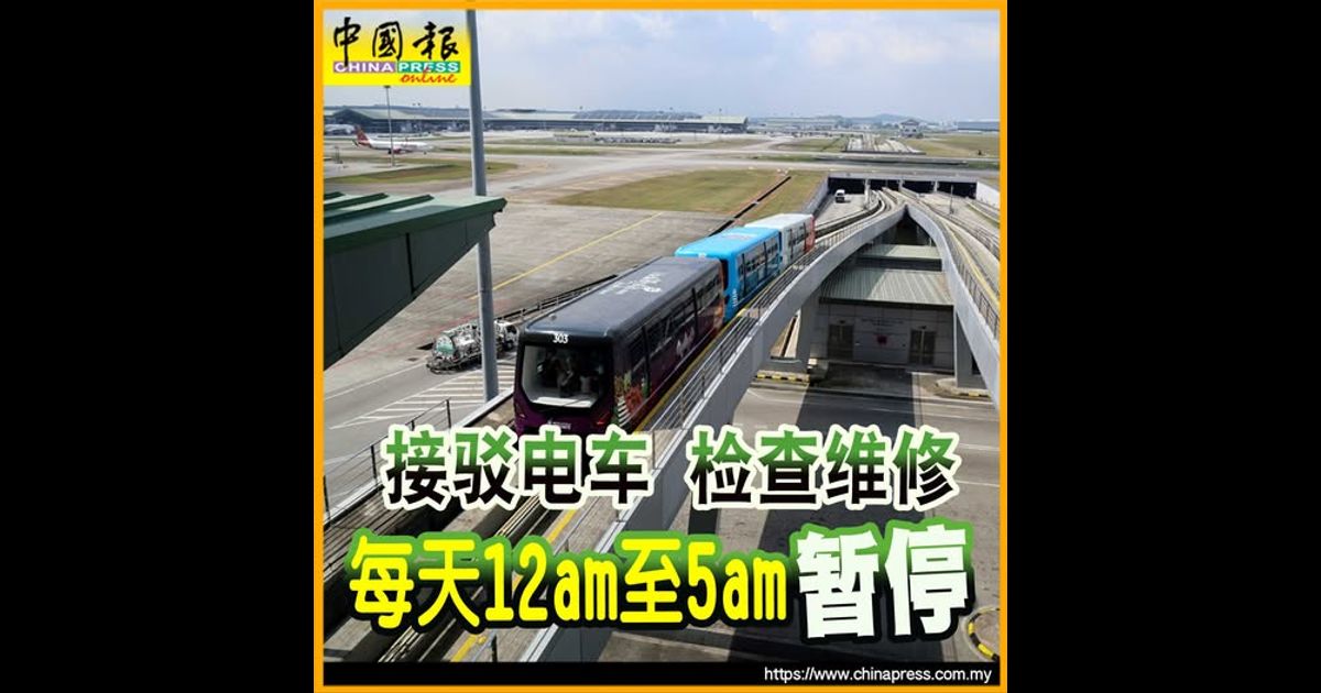 (雪邦7日讯)吉隆坡国际机场第一航站楼(KLIA1)宣布,该机场的接驳电车服务将于每日凌晨12时至清晨5时暂停运作,以进行检查与维修工作。