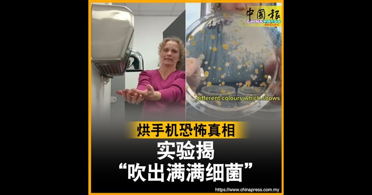 麦克拉伦在影片中表示,烘手机培养皿出现许多不同种类的细菌,甚至还有真菌,相对之下,一般空气样本完全没有细菌生长,这项结果令她直言,“这就是我不用烘手机的原因”,引发网友热议。