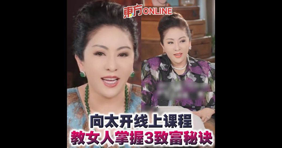 (香港9日讯)香港影视大亨向华强的妻子陈岚(向太)时常透过影片分享娱乐圈观察与人生观点,吸引大批网民关注。向太近期更掌握商机,推出线上课程,并在社交媒体上以“女人一旦掌握这3点,赚钱真的会很容易”为题,分享女性理财与自我成长的三大关键。