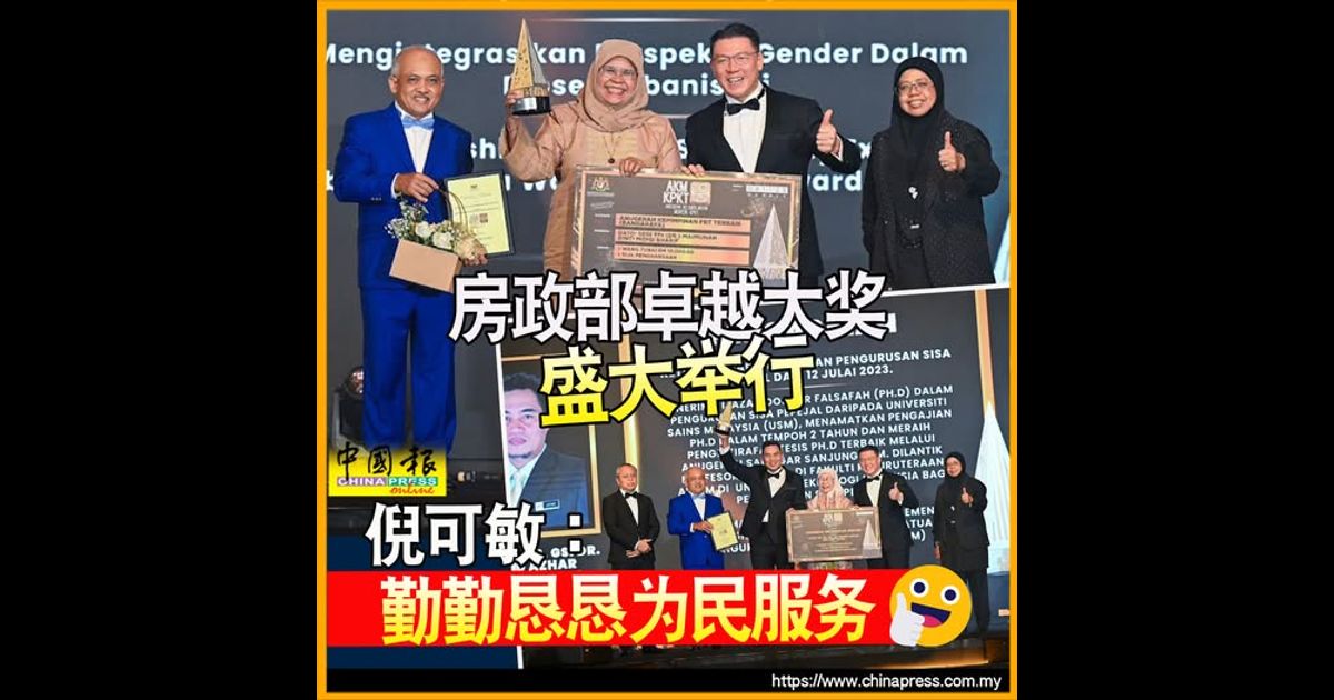 房屋及地方政府部长倪可敏在颁奖典礼致词时说,自从昌明政府上台至今,房政部一直身体力行贯彻绩效制,通过赏罚分明的制度激励该部公务员持续追求卓越表现。