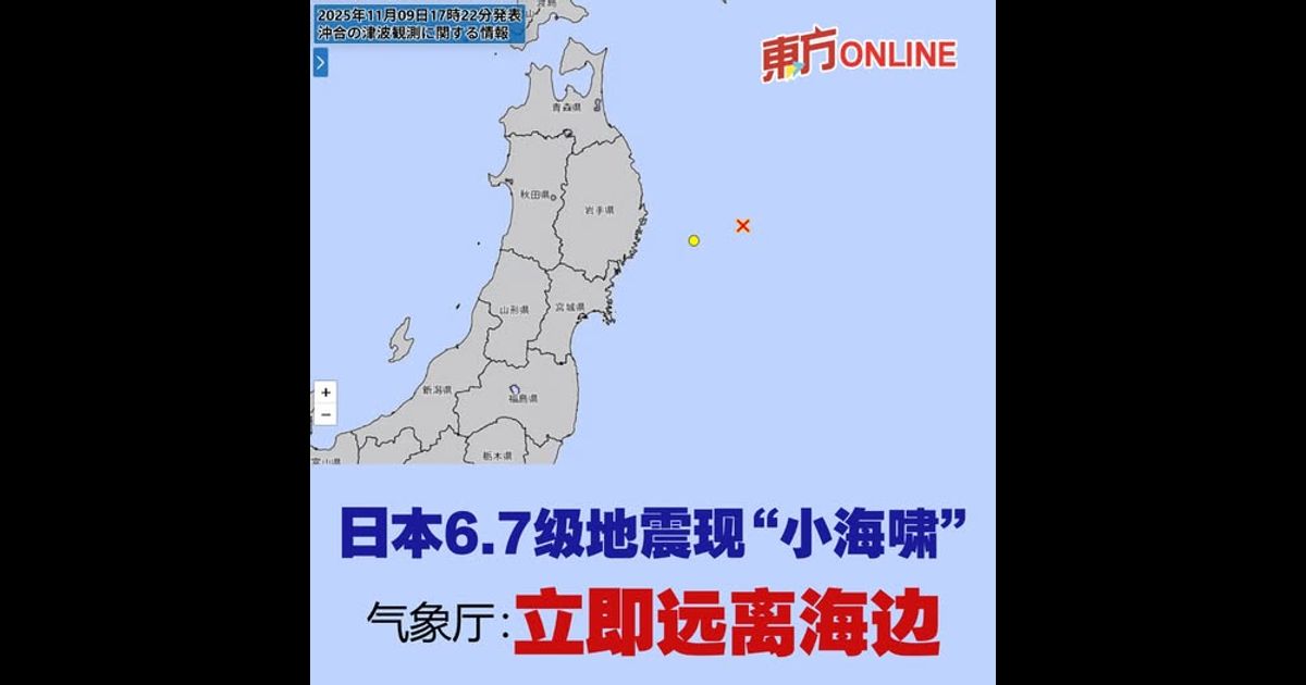 地震发生在下午5时3分左右(大马时间下午4时3分),震中位于岩手县外海,日本气象厅随即发布了可能引发高达1公尺海啸的预警。