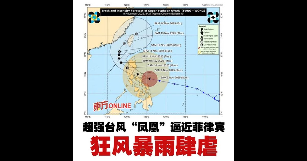 (马尼拉9日讯)日前才遭台风“海鸥”重创的菲律宾,还未来得及喘口气,在周日就得再面临另一波台风来袭。台风“凤凰”(Fung-wong)的强度在周日达到超强台风级别,预计于深夜登陆,而这场风暴的影响范围几乎覆盖整个菲律宾。