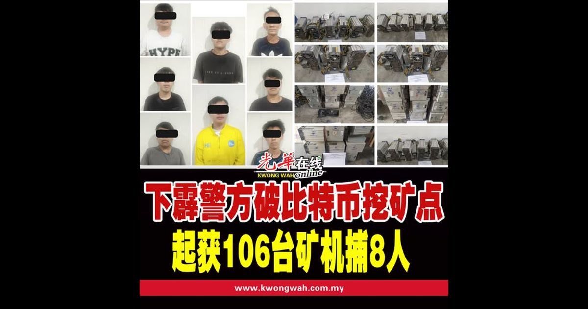 下霹警方破比特币挖矿点 起获106台矿机捕8人