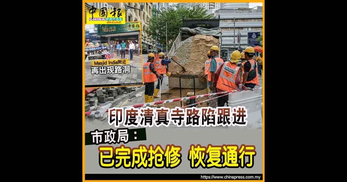 (吉隆坡10日讯) 吉隆坡市中心印度清真寺(Masjid India)一带再度发生路陷事件跟进;经过抢修后于今天傍晚6时竣工,并在之后重新开放有关路段。