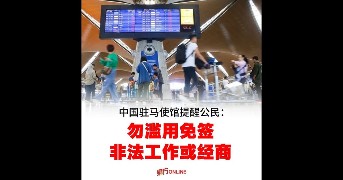 (吉隆坡12日讯)中国驻马来西亚大使馆近日发出提醒,呼吁中国公民切勿在马来西亚非法务工,并务必遵守当地法律法规。