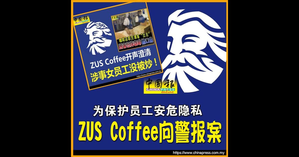 (吉隆坡12日讯)本地连锁咖啡品牌ZUS Coffee指出,为保护日前与顾客发生冲突事件员工的安危与隐私,他们已于周一(10日)就此事向警方报案。