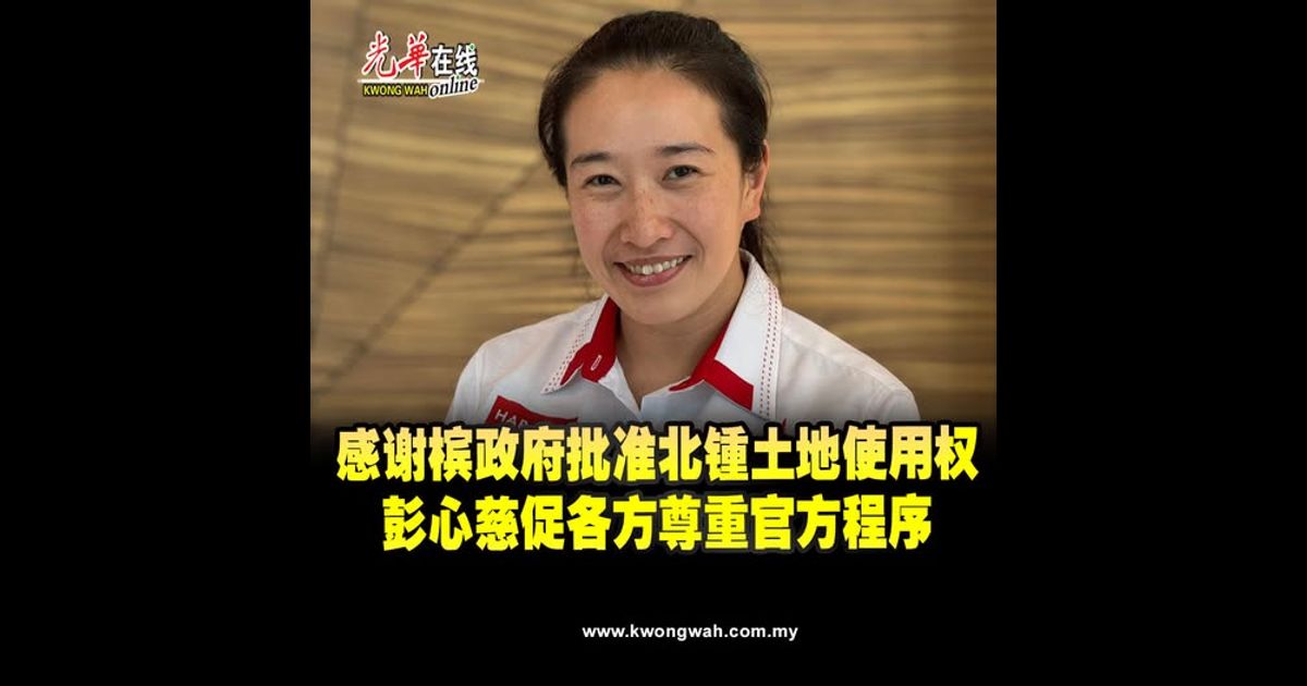 双溪浮油区州议员彭心慈对槟州行政议会,批准锺灵中学董事会对威北县巫金14区Lot 5533政府地使用权的申请表示感谢,并强调所有土地申请均须依照正式程序办理。