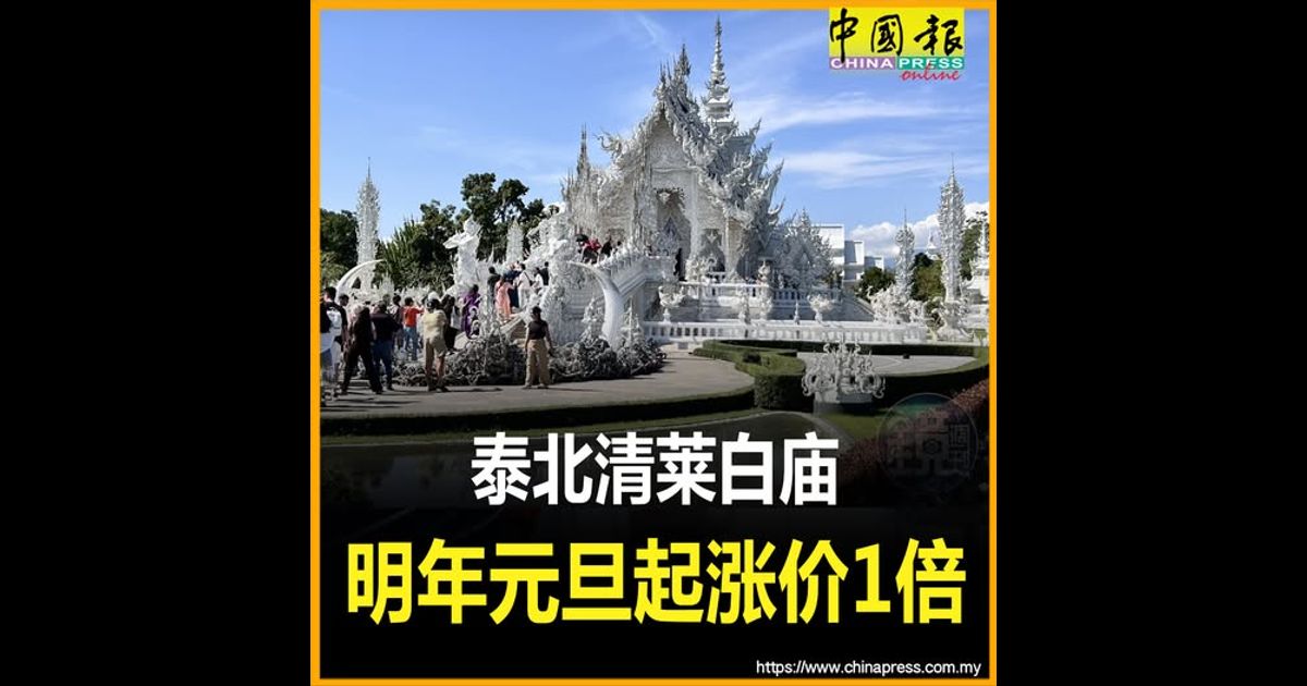 (曼谷11日综合电)泰北清莱知名景点“白庙”(Wat Rong Khun)将于2026年元旦起调整外国游客票价,门票将从现行的100泰铢(约13令吉)上涨至200泰铢(约26令吉),涨幅达1倍。