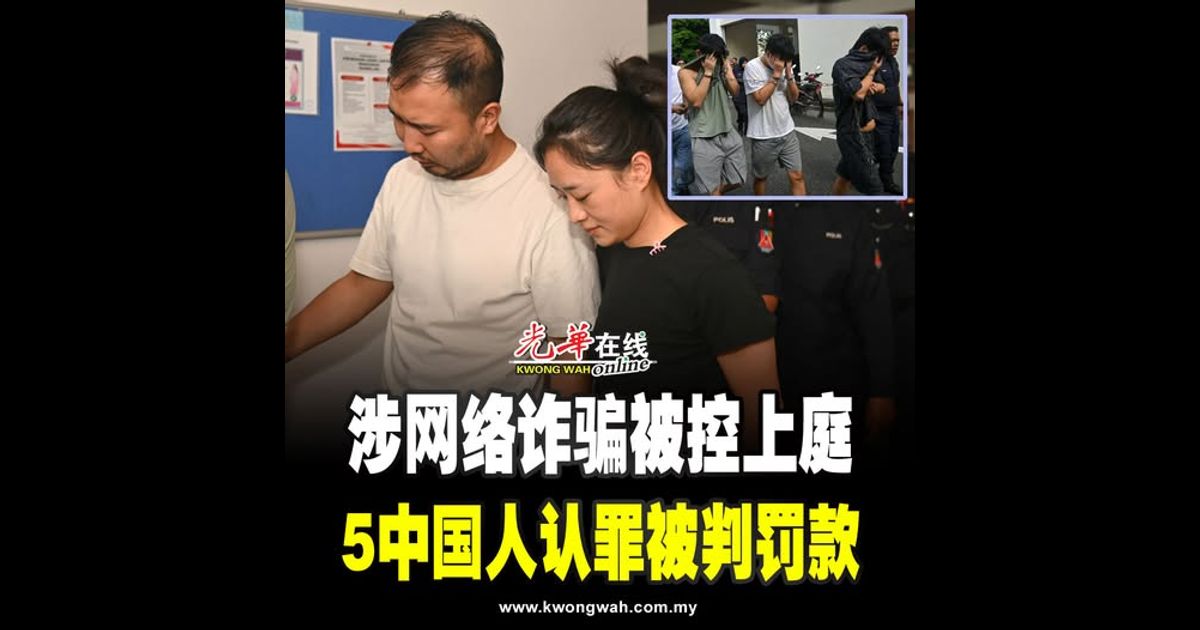 5名涉及网络爱情诈骗活动的中国籍男女,其中1男1女被控在大马逾期逗留,另外3名男子则被控滥用工作准证,5名被告皆认罪,分别被判罚款1万令吉及1000令吉。