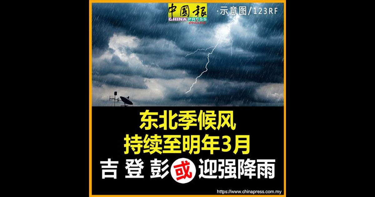 (吉隆坡14日讯)我国昨日起迎来东北季候风,预计持续至明年3月。气象局预测,吉兰丹、登嘉楼和彭亨3州将首当其冲,遭遇持续强降雨。