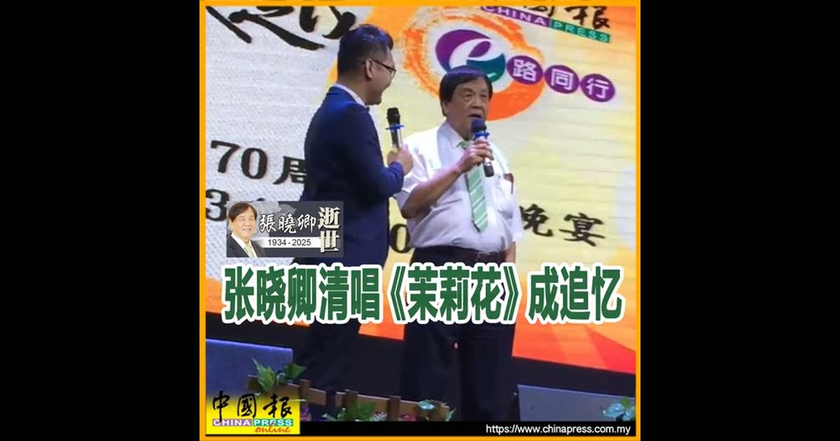 (吉隆坡13日讯)常青集团创办人丹斯里张晓卿生前最钟爱的歌曲之一,是中国经典民歌《茉莉花》。他曾多次在公开场合清唱此曲,声情并茂、真挚动人。据悉,这首歌自他年少时便深受喜爱,直至晚年仍记忆清晰,能完整唱出旋律与歌词,情感未减。