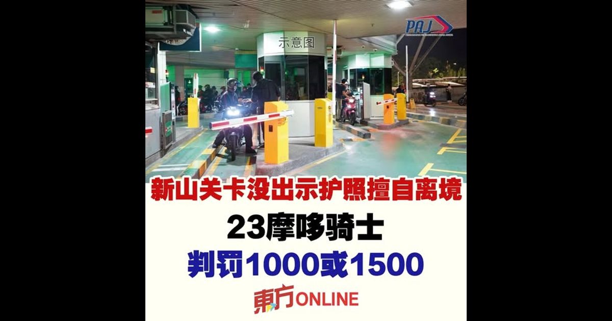 新山关卡没出示护照擅自离境 23摩哆骑士判罚1000或1500