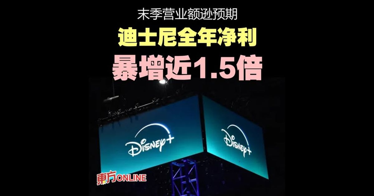 (三藩市14日讯)美国娱乐巨头迪士尼(Walt Disney)公布业绩,在截至9月杪的2025财政年净利按年暴增1.49倍,至124亿美元(约512亿令吉);经调整季节性因素后的每股盈利(EPS)按年升19%,至5.93美元;营业额则按年微增逾3%,至近944亿3000万美元(约3902亿令吉)。