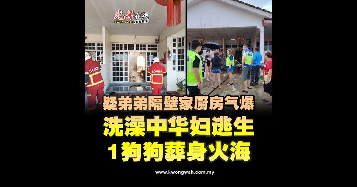 疑因弟弟的隔壁住家厨房瓦斯泄漏发生爆炸,一名正在洗澡的华妇突然听见巨响后,吓得只围着毛巾逃出屋外!