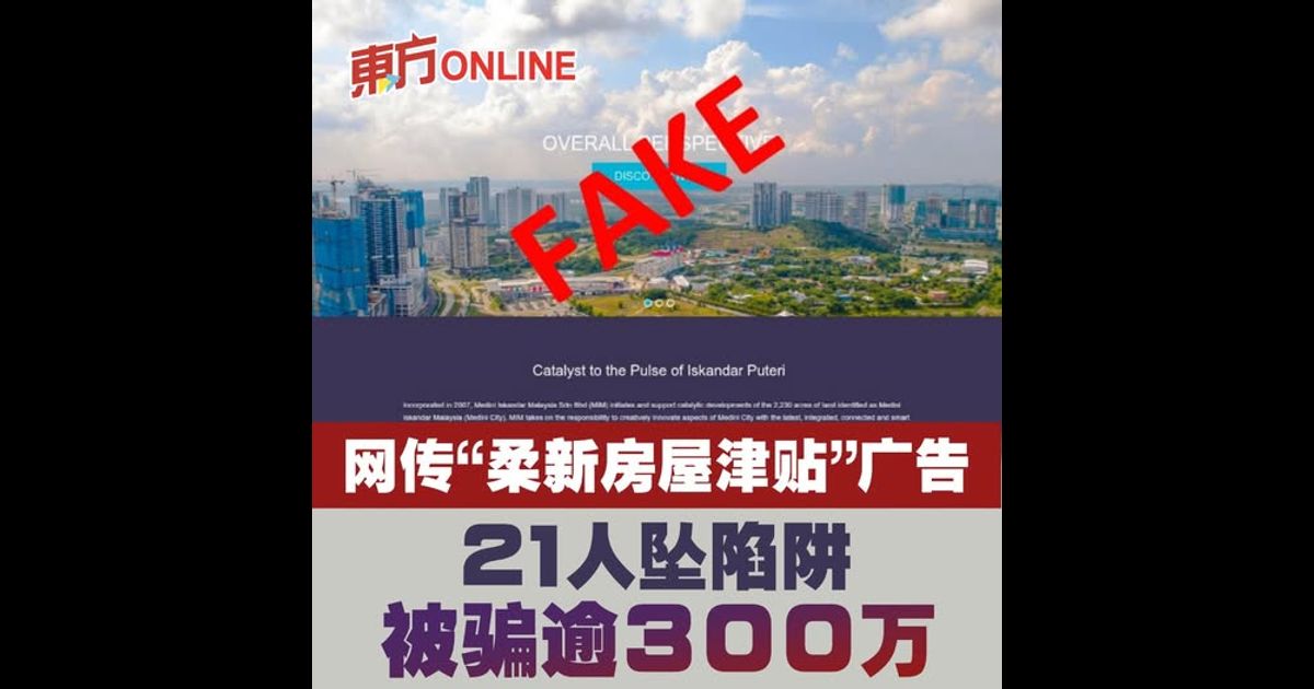 (新加坡14日讯)以“新山-新加坡房屋津贴计划”或“长堤对岸免费房屋”等广告为幌子,称新加坡政府和马来西亚柔佛州政府合作提供住房补贴,至少21人坠入诈骗陷阱,损失金额超过100万新元(约317万4700令吉)。